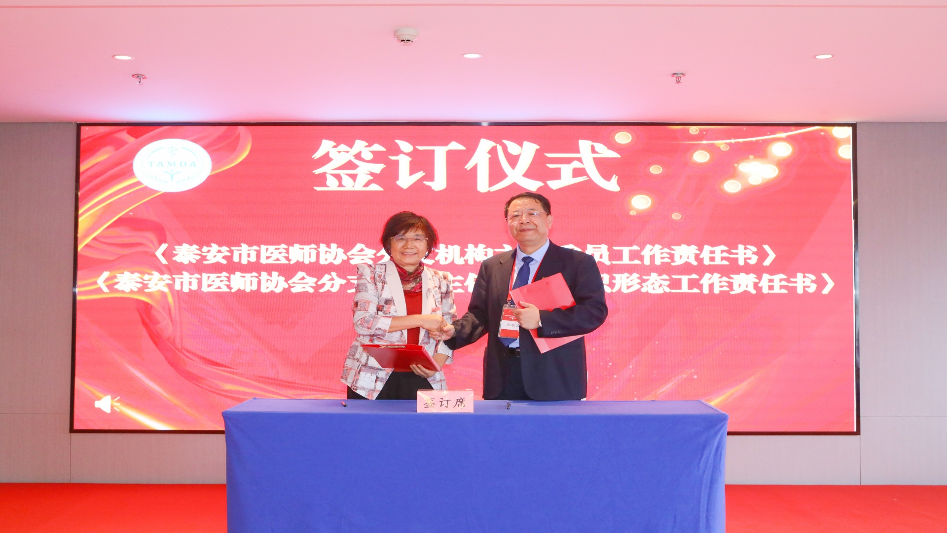 ? ? ? ? 作為首屆眼科醫(yī)師分會第一發(fā)起人、籌備委員會負責人,楊敬昌在會議伊始就詳細匯報了分會籌備情況,為分會的順利成立奠定了堅實基礎。會議期間,還完成了泰安市醫(yī)師協(xié)會眼科醫(yī)師分會第一屆委員會選舉、頒發(fā)聘書等重要議程,楊敬昌現(xiàn)場簽訂《泰安市醫(yī)師協(xié)會分支機構工作責任書》與《泰安市醫(yī)師協(xié)會分支機構意識形態(tài)工作責任書》,以嚴謹態(tài)度扛起分會建設與發(fā)展的重任。